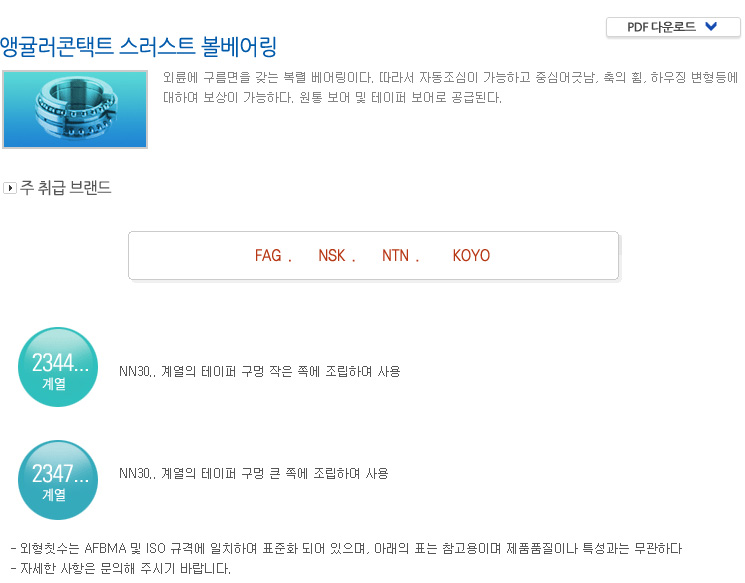 접촉각 | FAG | NSK | KOYO | NTN |